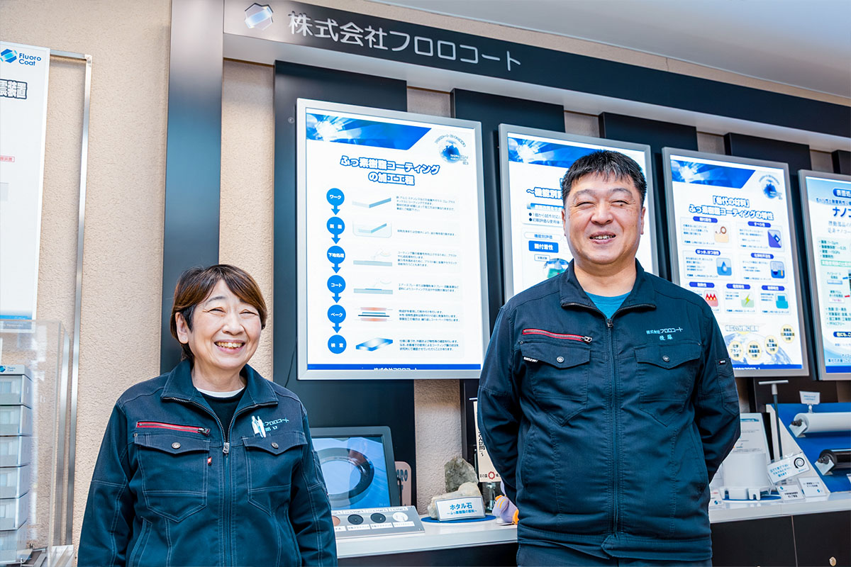 ふっ素樹脂コーティングを中心に表面改質加工の専業メーカーである株式会社フロロコート。ふっ素樹脂の持つ非粘着性や耐薬品性、耐摩耗性といった特性を活かし、さまざまな製品や設備にコーティング加工を施す受託事業を展開しています。